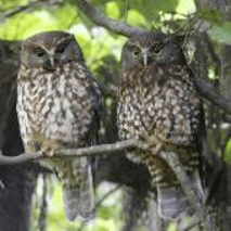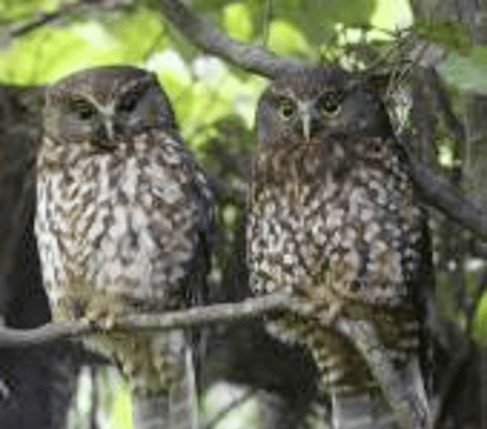 Morepork. Adult pair roosting showing contrasting plumage. Blowhard Bush, December 2012. Photo by Adam Clarke
