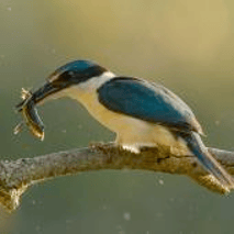 The Kingfisher is a Pacific species right at home in either the bush or rocky shore. Nesting in holes in banks, the birds are supreme fishers, and add to their diet with crabs, crickets and lizards.